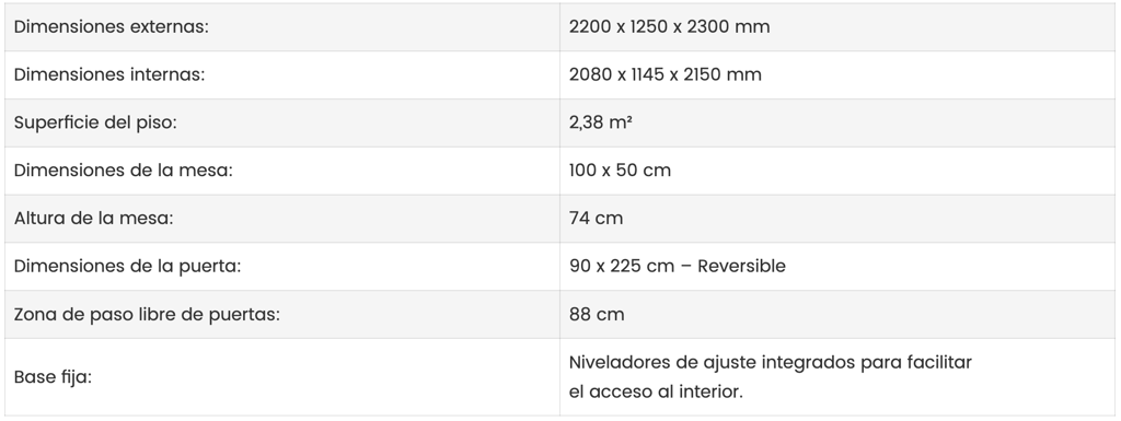 Fácil instalación: Las cabinas están diseñadas para ser fáciles de instalar y se pueden montar sin necesidad de obras importantes.