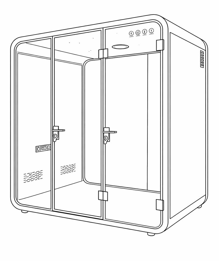 Aislamiento acústico de alta calidad: Las cabinas están construidas con materiales de alto aislamiento acústico, lo que garantiza que las conversaciones se mantengan privadas y que el ruido exterior se minimice.