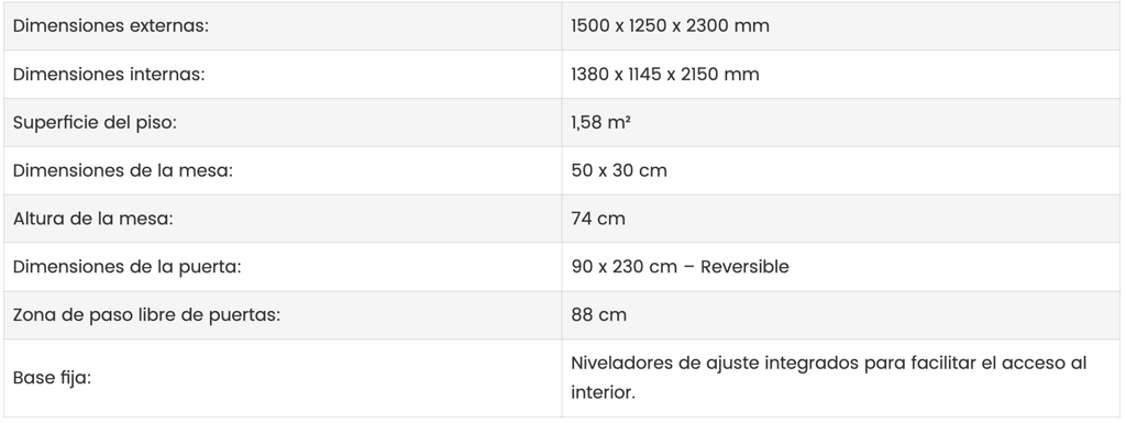 Fácil instalación: Las cabinas están diseñadas para ser fáciles de instalar y se pueden montar sin necesidad de obras importantes.