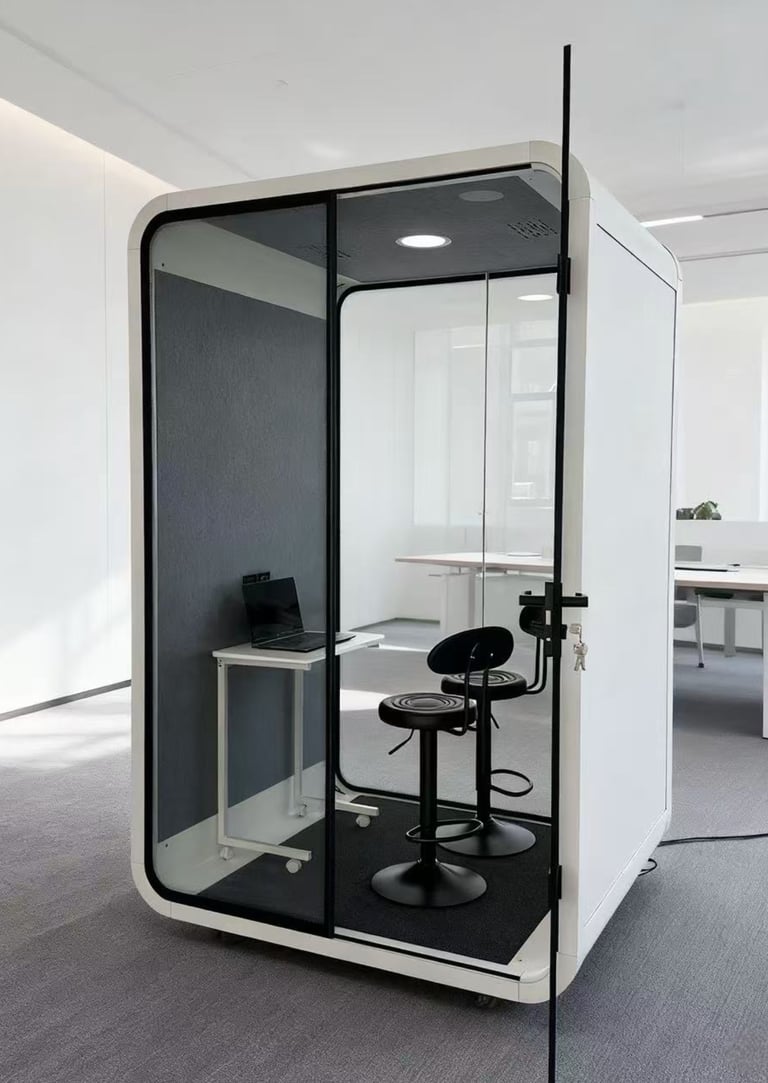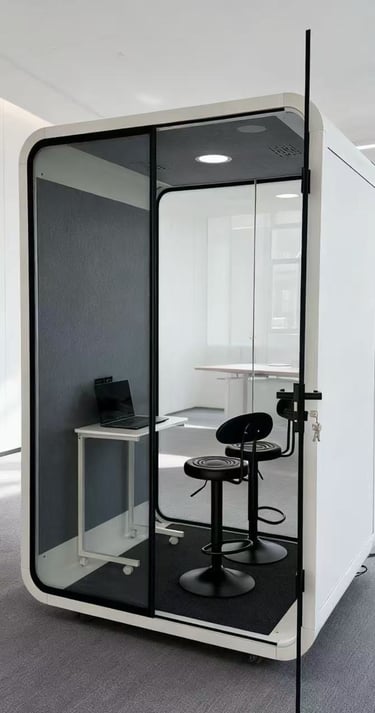 Aislamiento acústico de alta calidad: Las cabinas están construidas con materiales de alto aislamiento acústico, lo que garantiza que las conversaciones se mantengan privadas y que el ruido exterior se minimice.